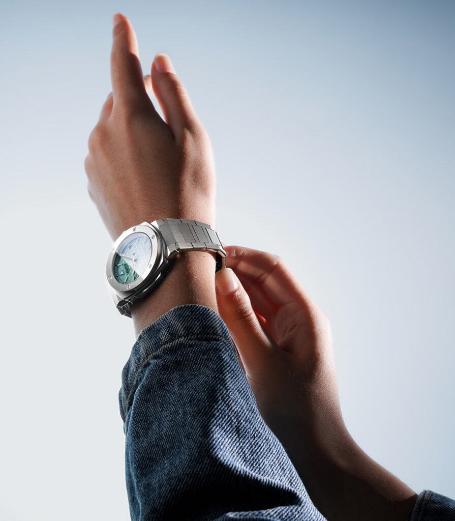 zintegrowanej stalowej bransolecie , które prezentują się bardziej elegancko i pasują do bardziej formalnych strojów. Wyrazisty, bordowy kolor tarczy w połączeniu ze stalą prezentuje się bardzo modnie. Drugi, mniej rzucający się w oczy model z miętowozieloną tarczą wnosi powiew świeżości i będzie łatwiej go zestawiać z różnymi stylizacjami.